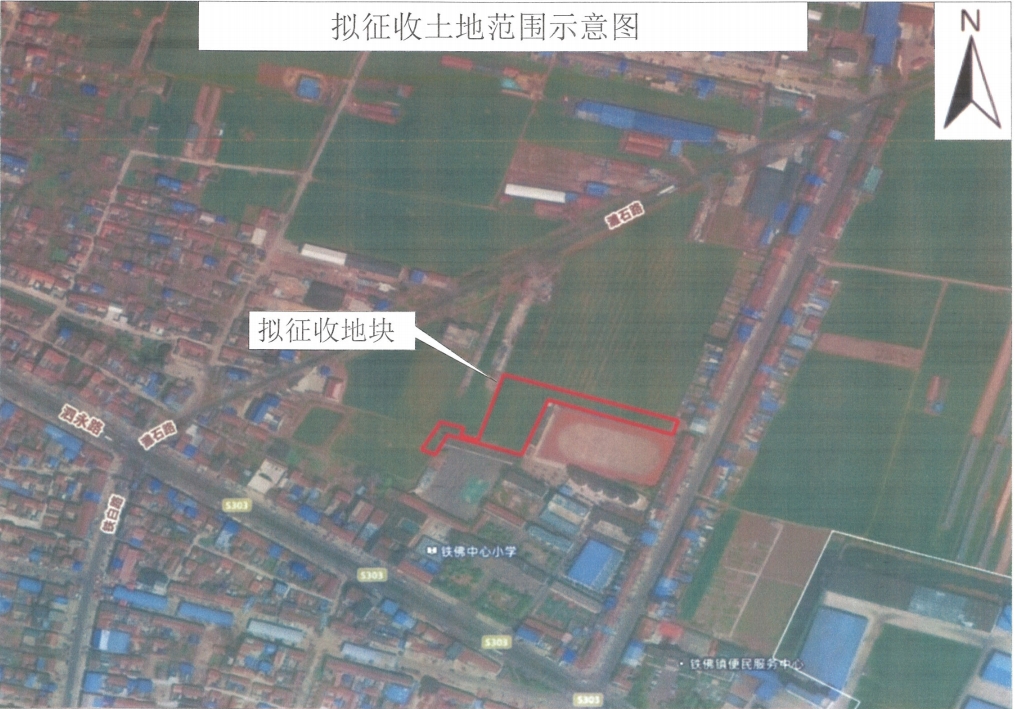 本次拟征收土地东至铁佛村道路,南至铁佛中心学校,西至铁佛村土地,北至铁佛村土地。