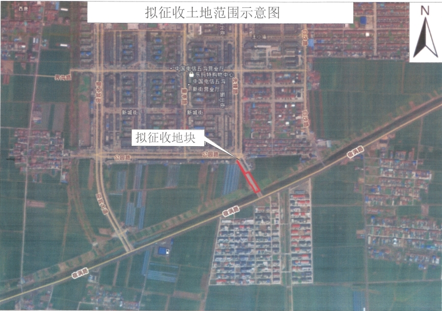 本次拟征收土地东至白寺村道路,南至沟渠,西至白寺村土地,北至五沟镇公园路。