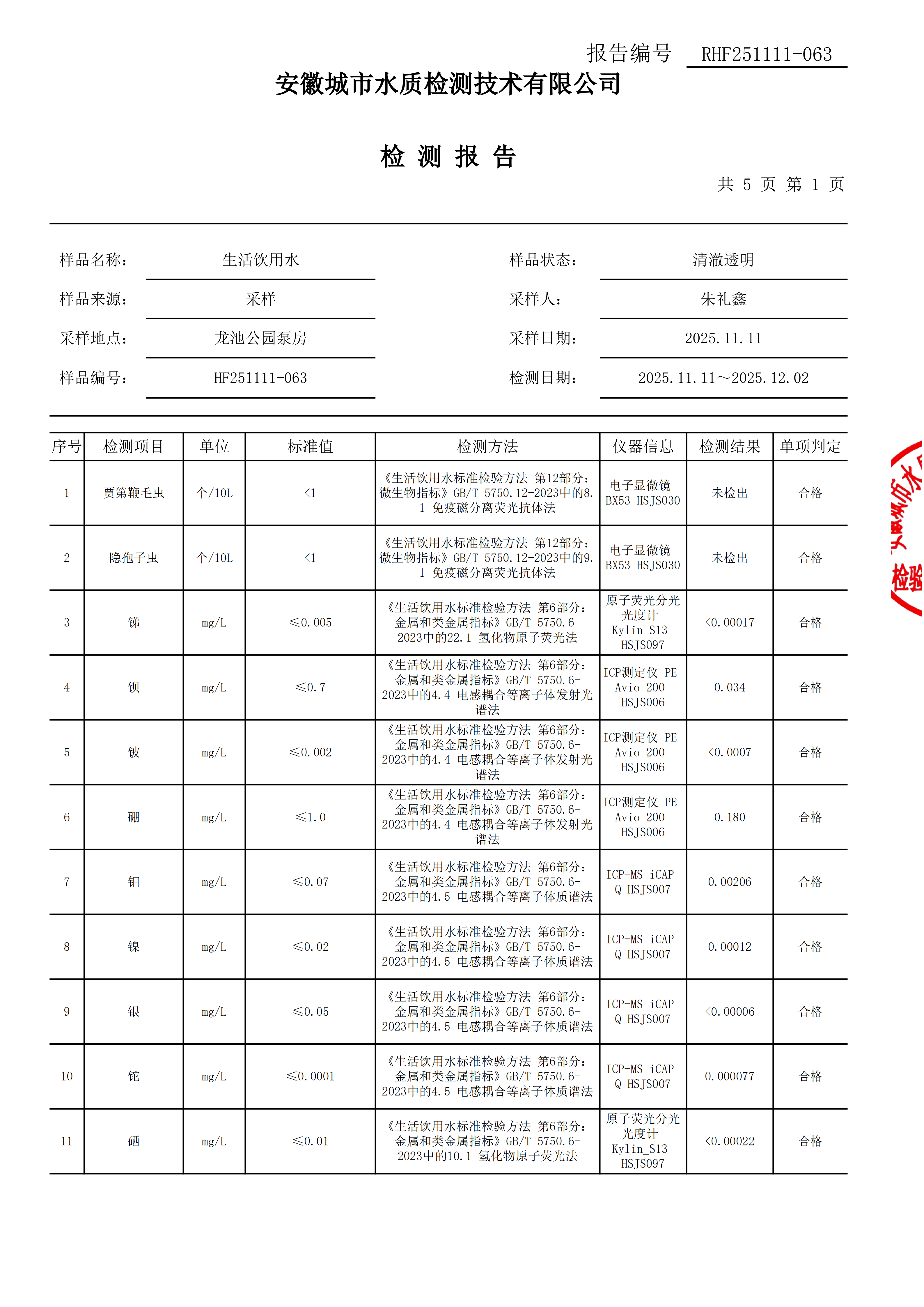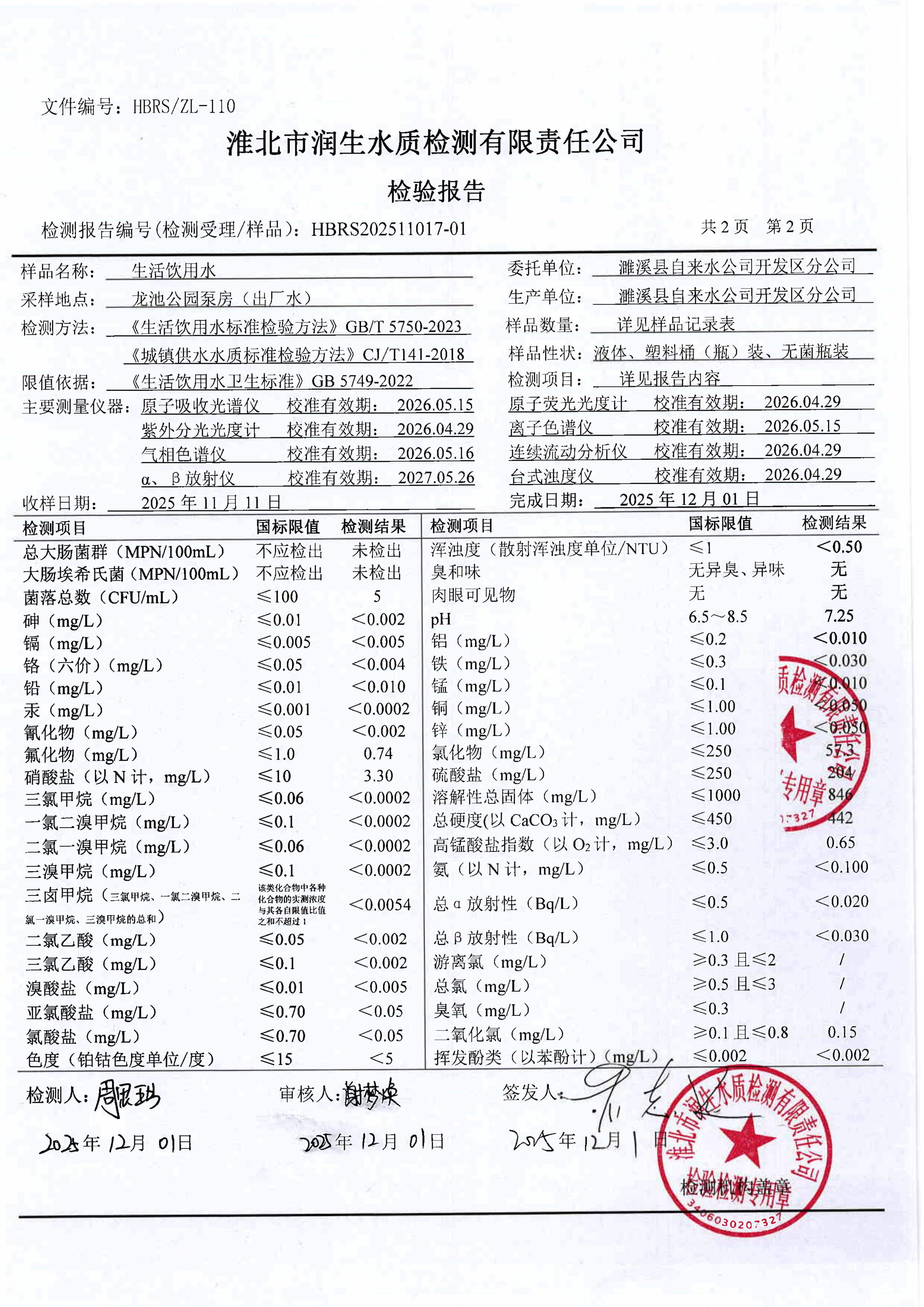 2025年出厂水水质全分析(年检) |