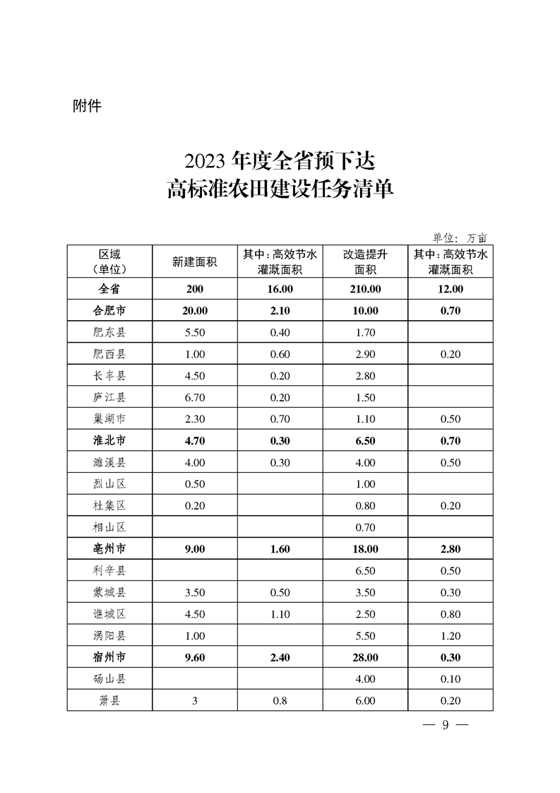 安徽省农业农村厅关于预下达2023年度全省农田建设任务的通知