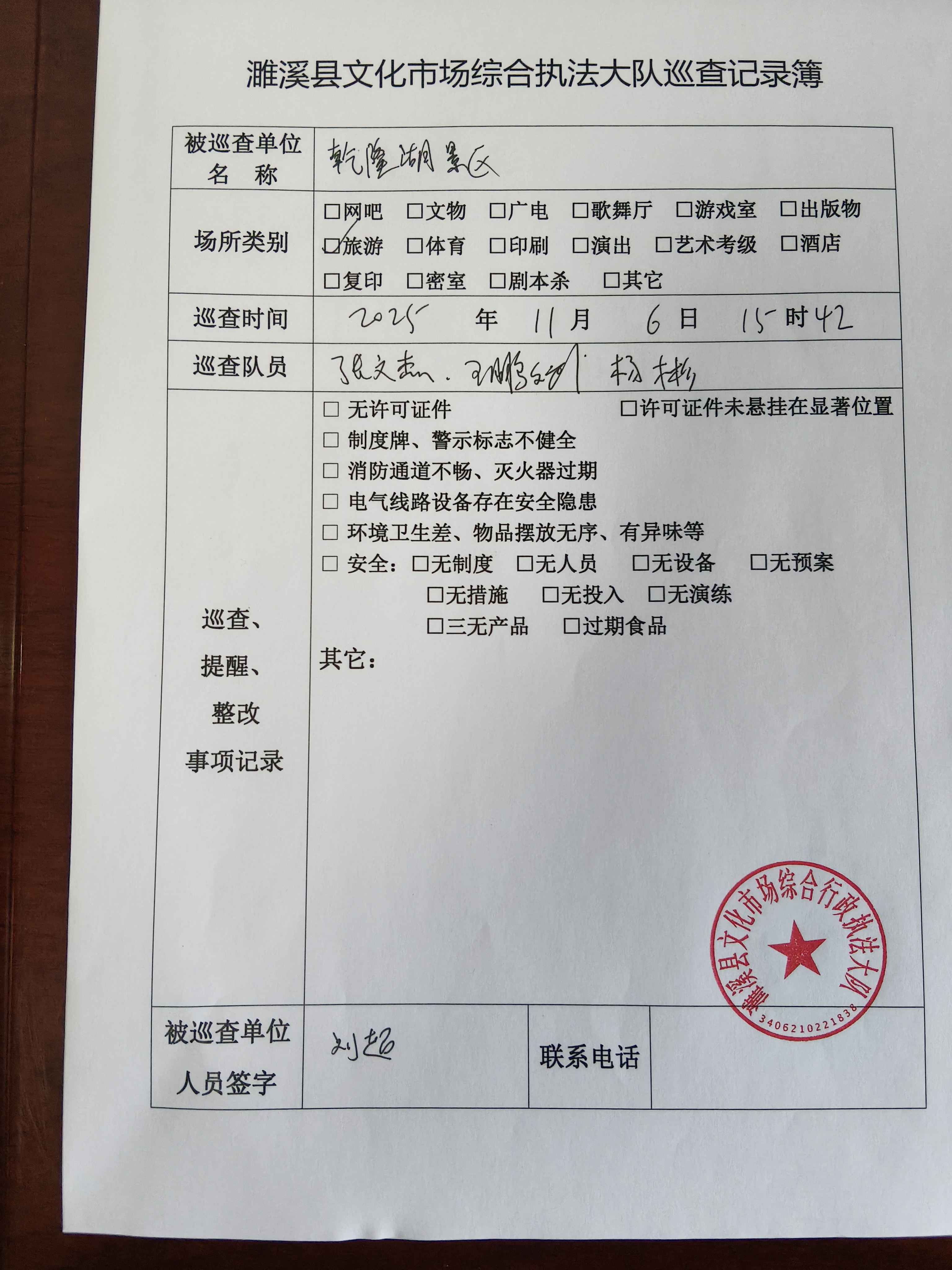 县文化市场综合执法队检查乾隆湖景区 |