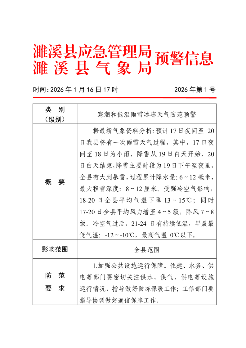 【天气类预警信息】寒潮和低温雨雪冰冻天气防范预警 |