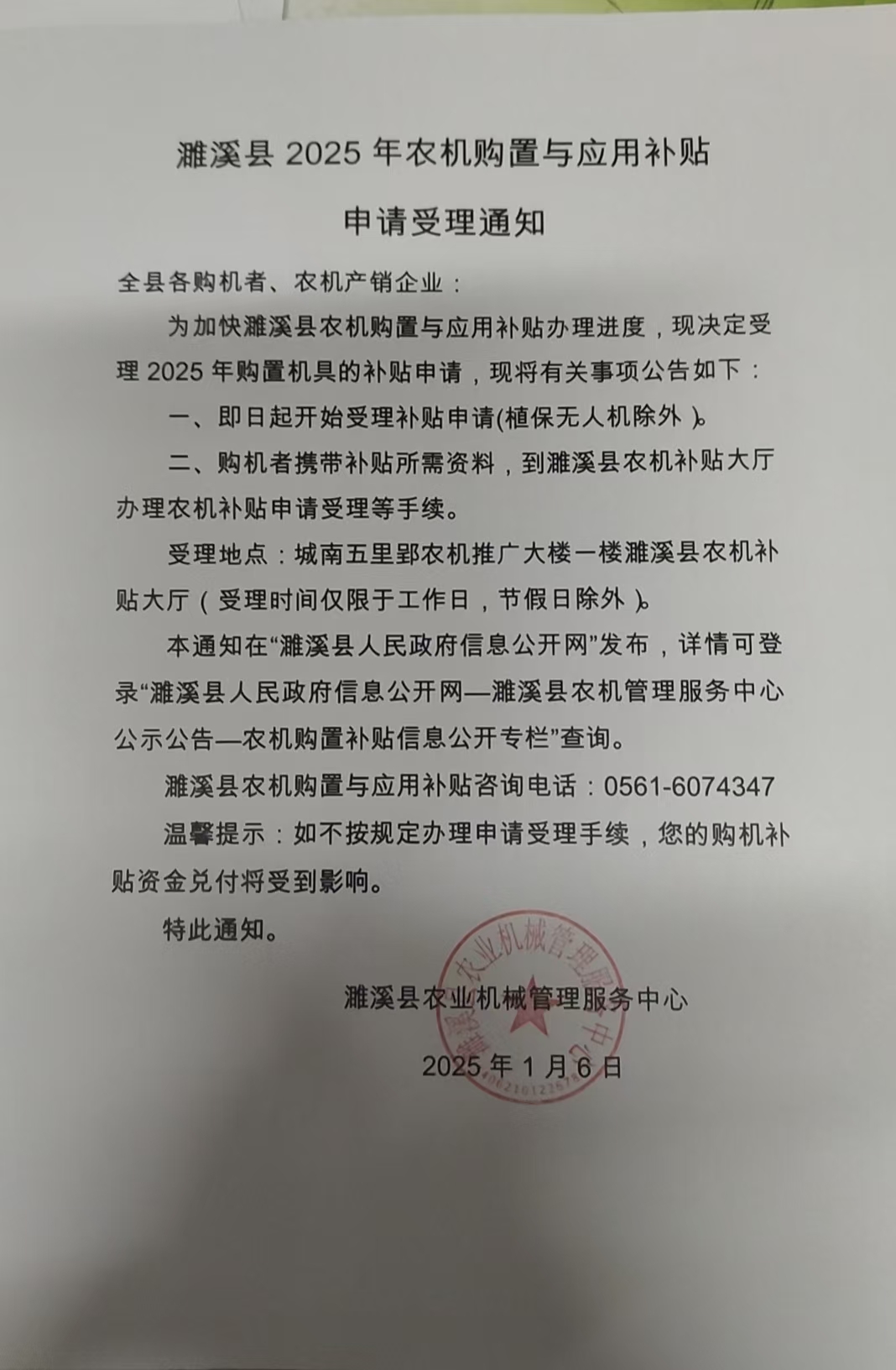 2025年濉溪县农机购置与应用补贴申请受理通知 |