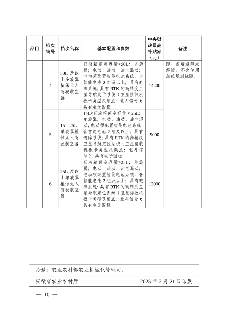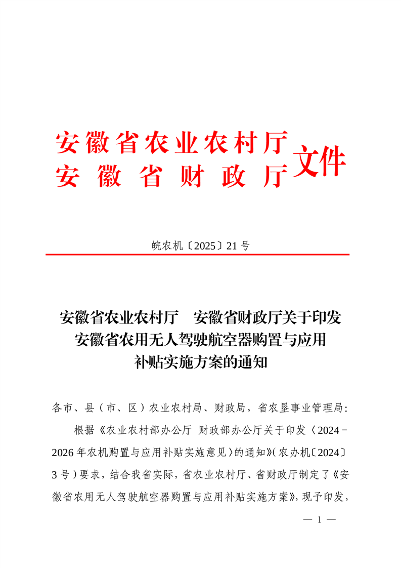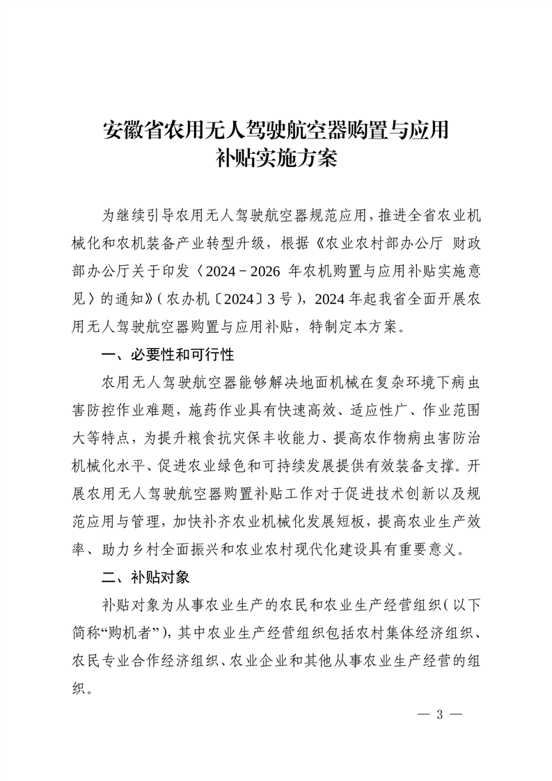 安徽省农业农村厅安徽省财政厅关于印发安徽省农用无人机驾驶航空器购置与应用补贴实施方案的通知
