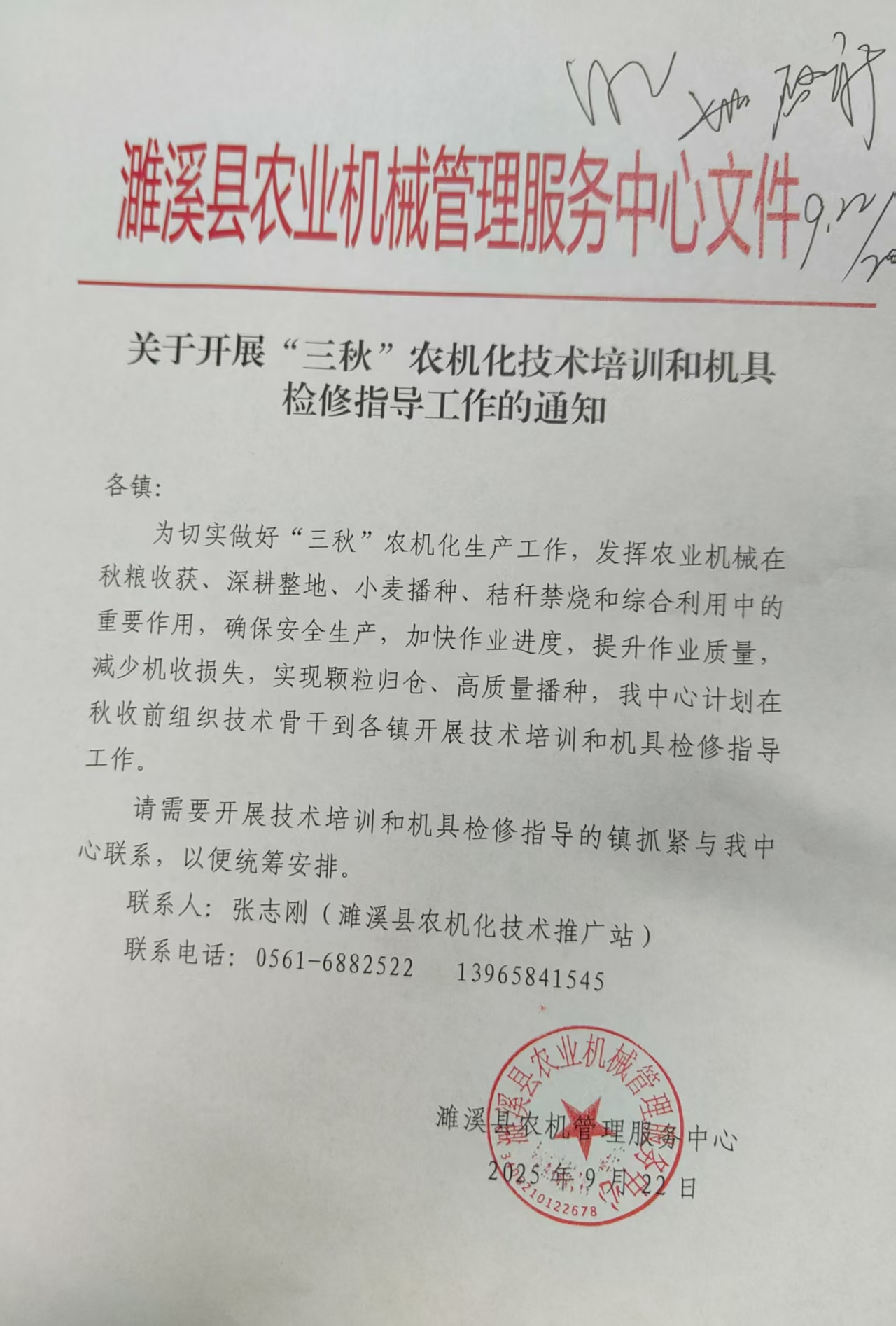 2025年“三秋”农机化技术培训和机具检修指导工作的通知