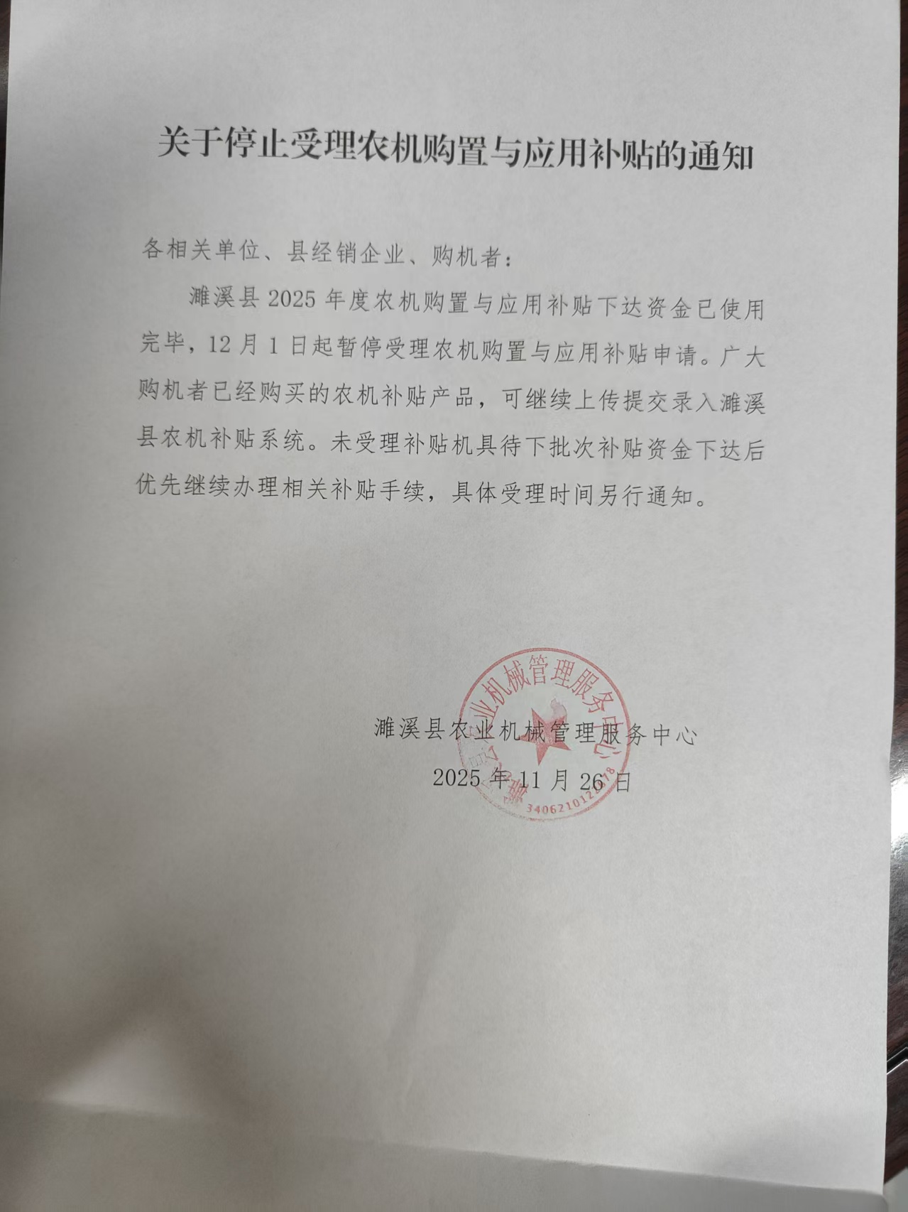 关于停止农机购置与应用补贴的通知 |