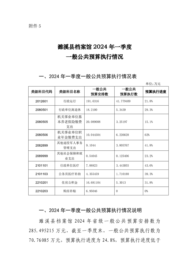 县档案馆2024年第一季度一般公共预算执行情况 |