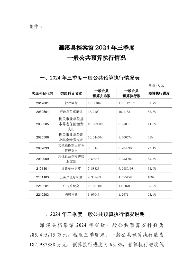 县档案馆2024年第三季度一般公共预算执行情况 |