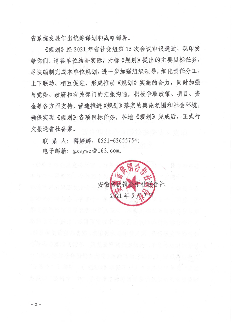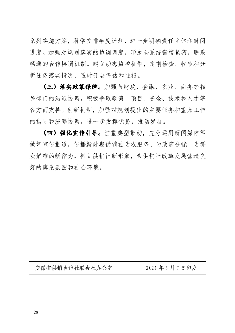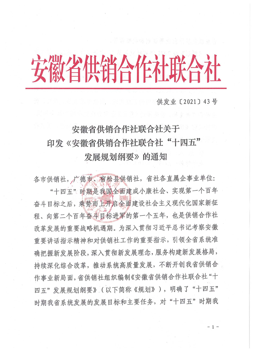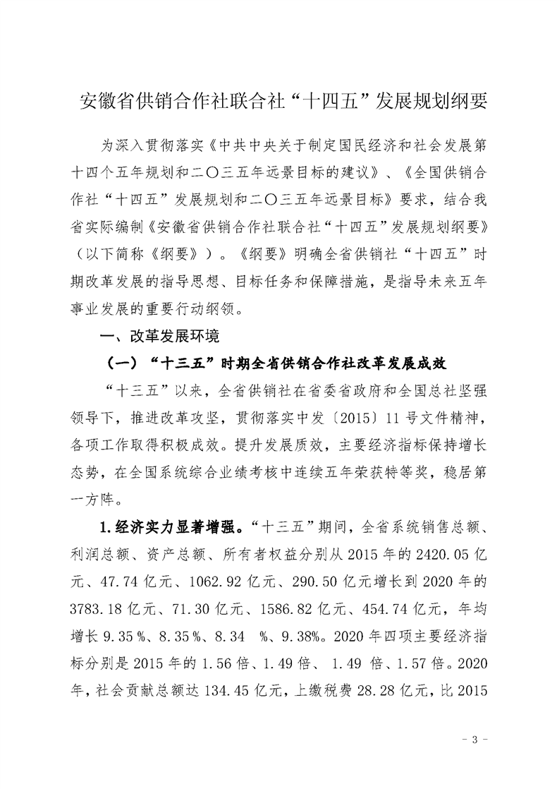 关于印发《安徽省供销合作社联合社“十四五”发展规划纲要》的通知