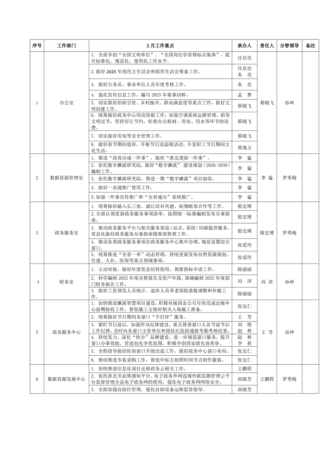 濉溪县数据资源管理局2026年2月份重点工作安排表