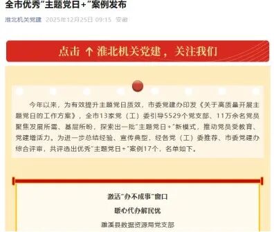 坚定信念,凝聚力量。2025年9月,县数据局被县委组织部、县直机关工委授予濉溪县直机关“四强”党支部荣誉称号。12月,《激活“办不成事”窗口 暖心代办解民忧》被淮北市委党建办评选为淮北市“主题党日+”优秀案例。党建品牌情景剧《全程代办 极速之钥》,在参加省、市、县各类比赛中均取得优异成绩。2025年1月20日,县数据局组织“快办”党员志愿服务队走进“红淮集市”,为居民、企业法人提供政策解读等服务。8月12日,县数据局开展“小推车红色党课”主题党日活动,实现党性教育、惠民实践与政务服务深度融合,生动诠释了“小推车精神”时代新义。持续开展“我是党员我承诺 为民服务我先行”主题党员服务承诺活动,39个窗口140名党员干部郑重作出承诺,通过“三亮”“三比”掀起争先创优热潮,形成党员带群众、上下联动、党群共建的良好氛围。