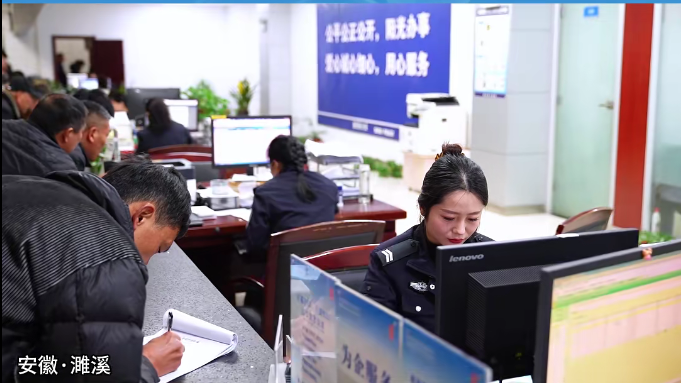 公安窗口人员在有条不紊的工作