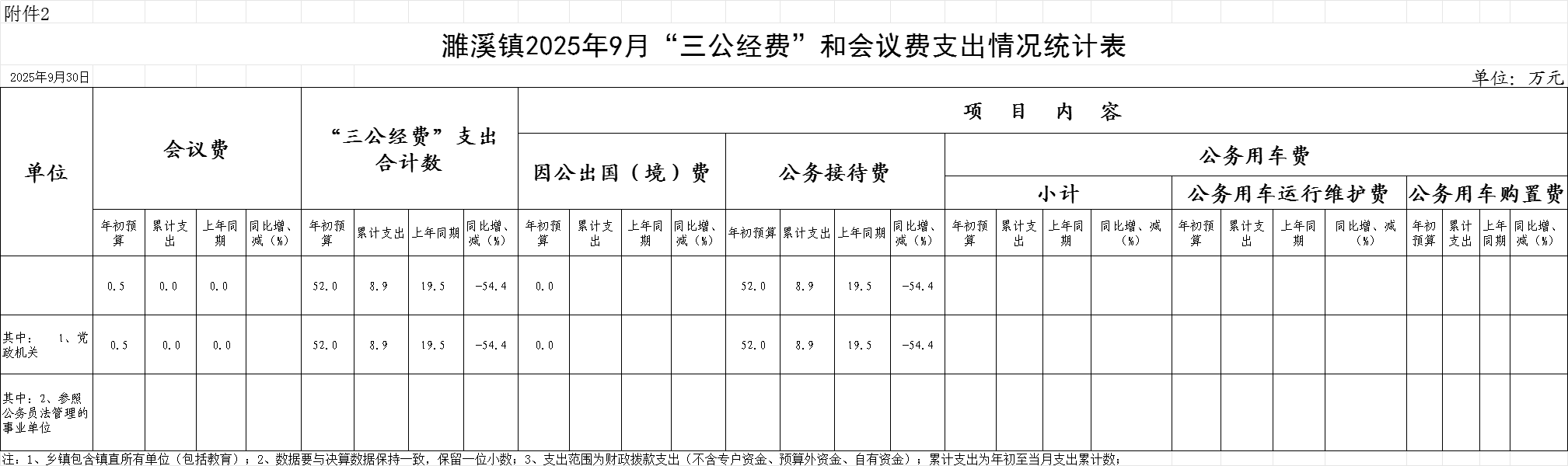 濉溪镇2025年9月“三公经费”和会议费支出情况统计表