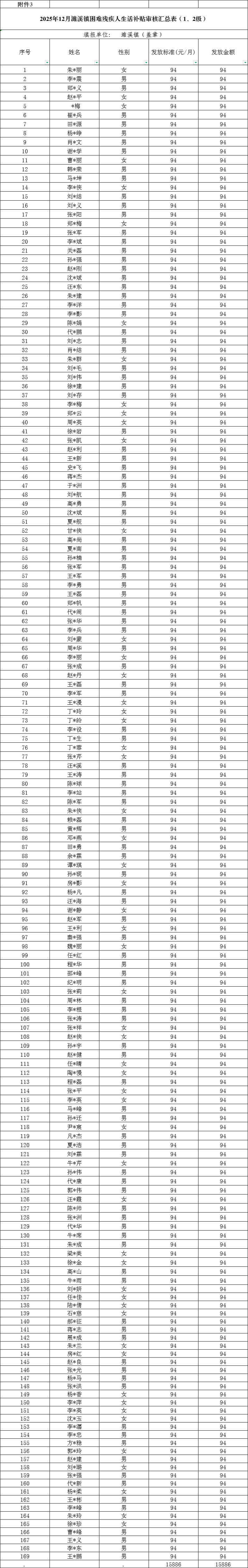 2025年12月濉溪镇困难残疾人生活补贴审核汇总表(非农业1、2级)