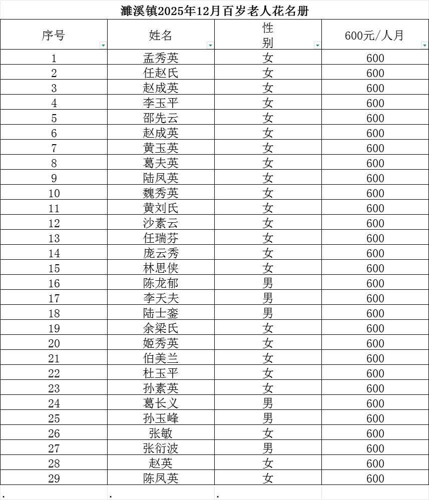 濉溪镇2025年12月百岁老人高龄津贴发放花名册 |