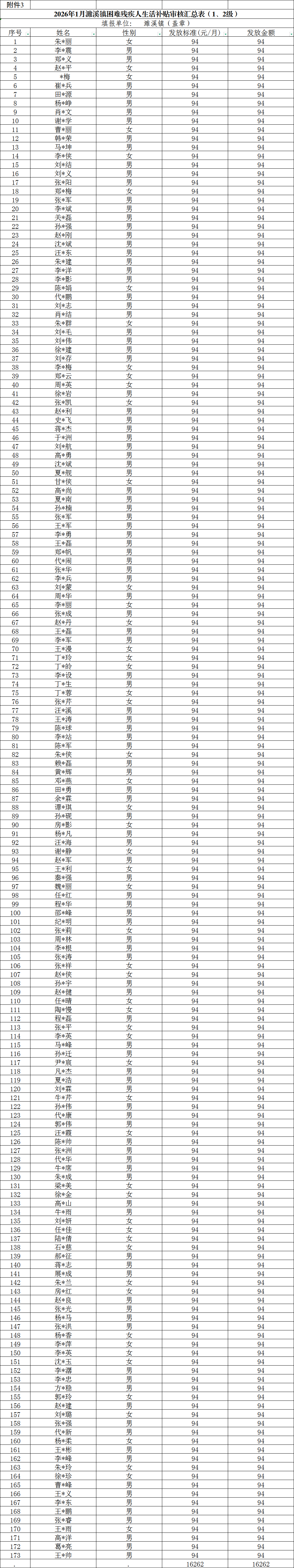 2026年1月濉溪镇困难残疾人生活补贴审核汇总表(非农业1、2级)