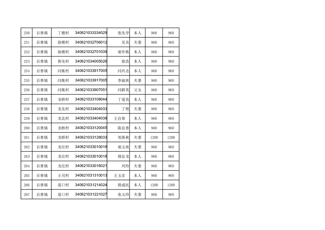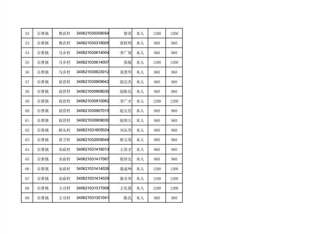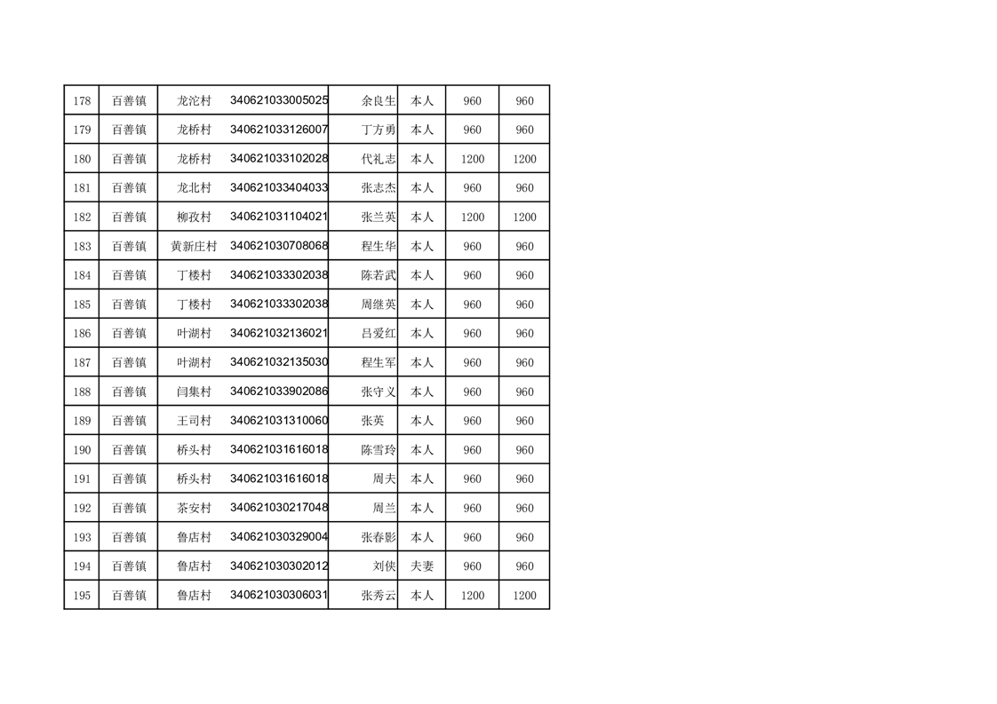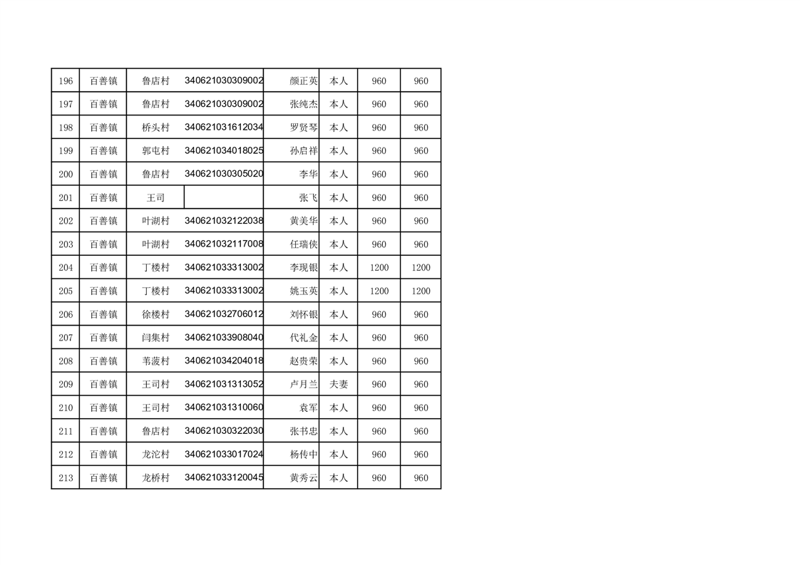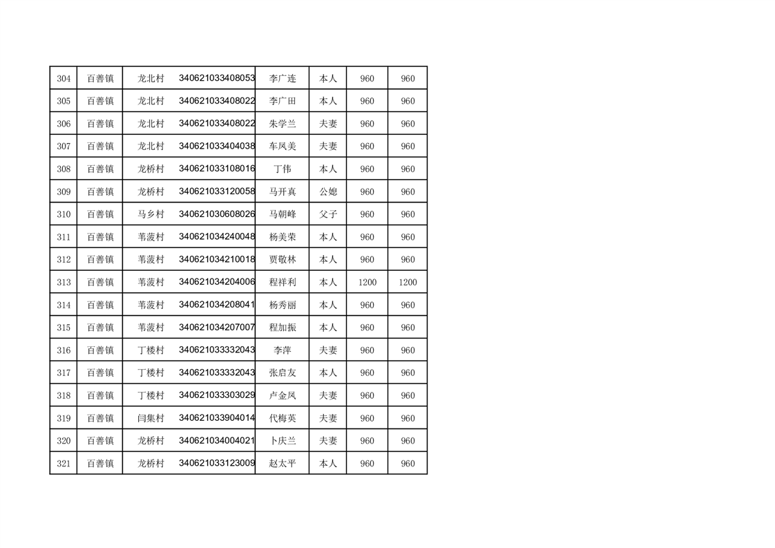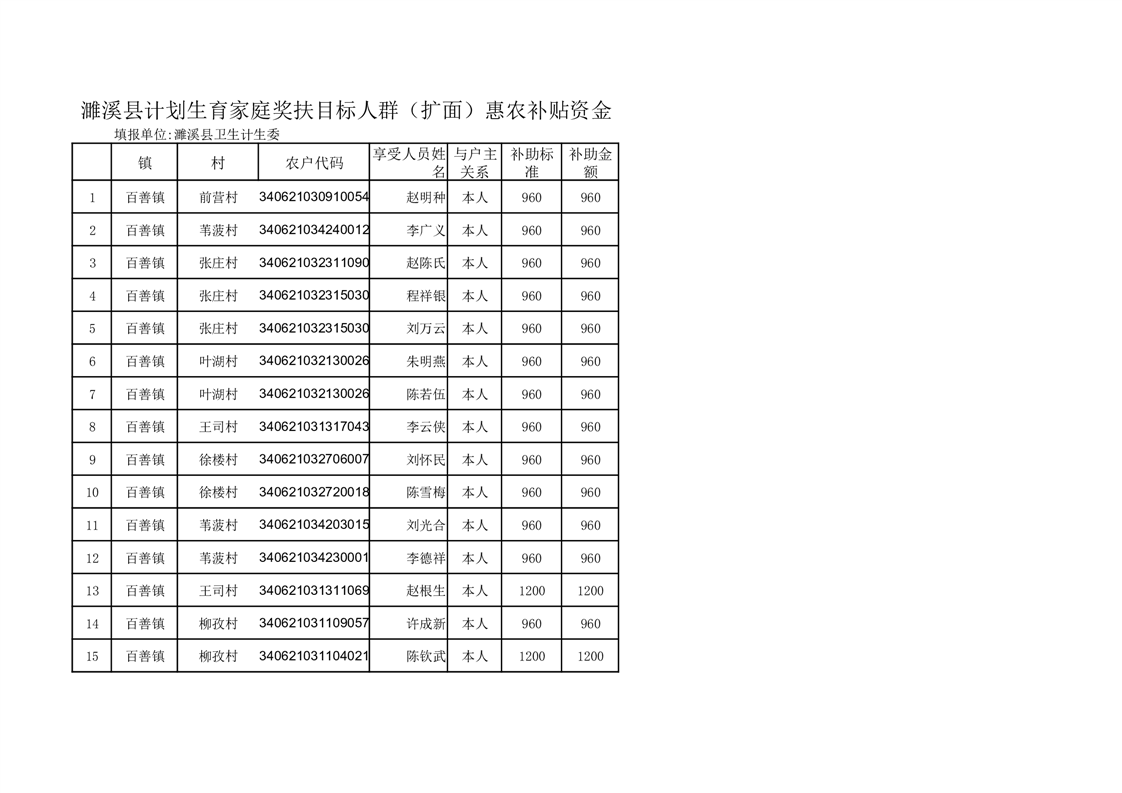 濉溪县计划生育家庭奖扶目标人群(扩面)惠农补贴资金单项分户清册