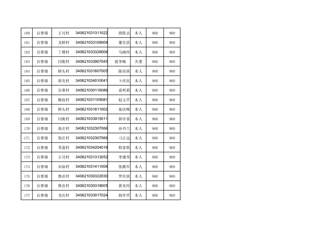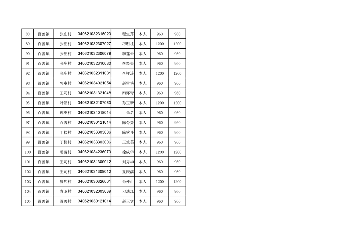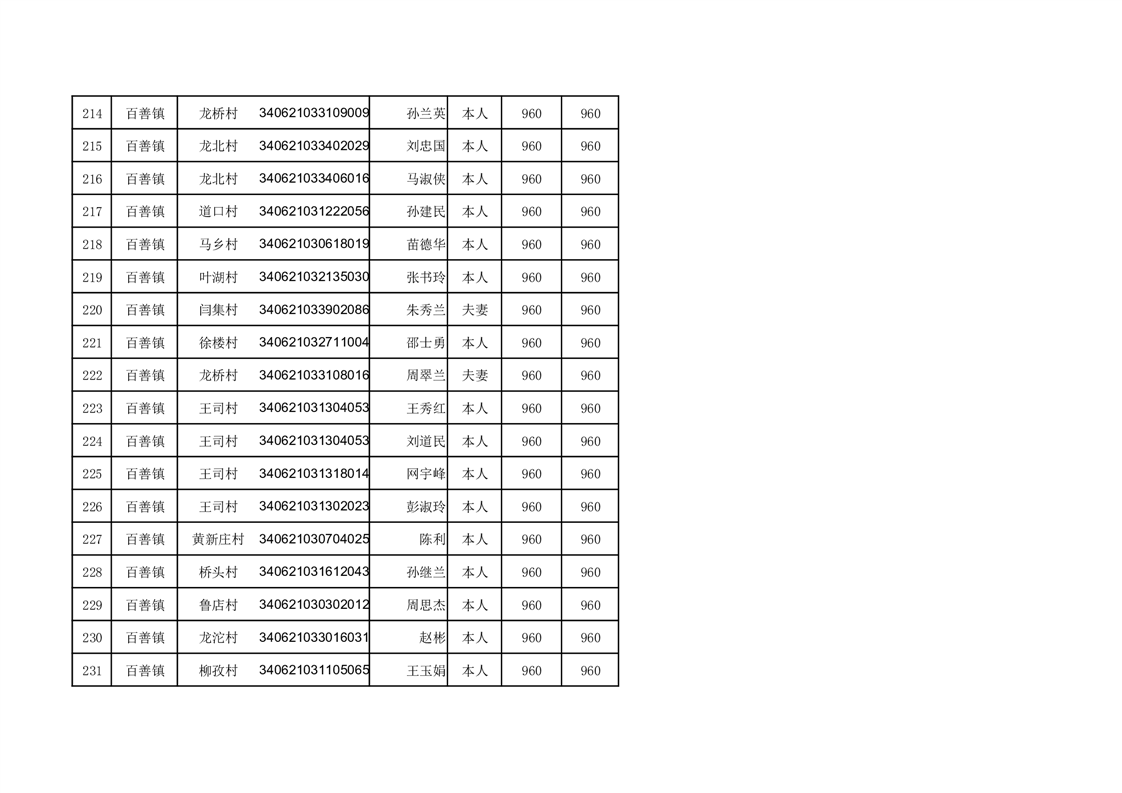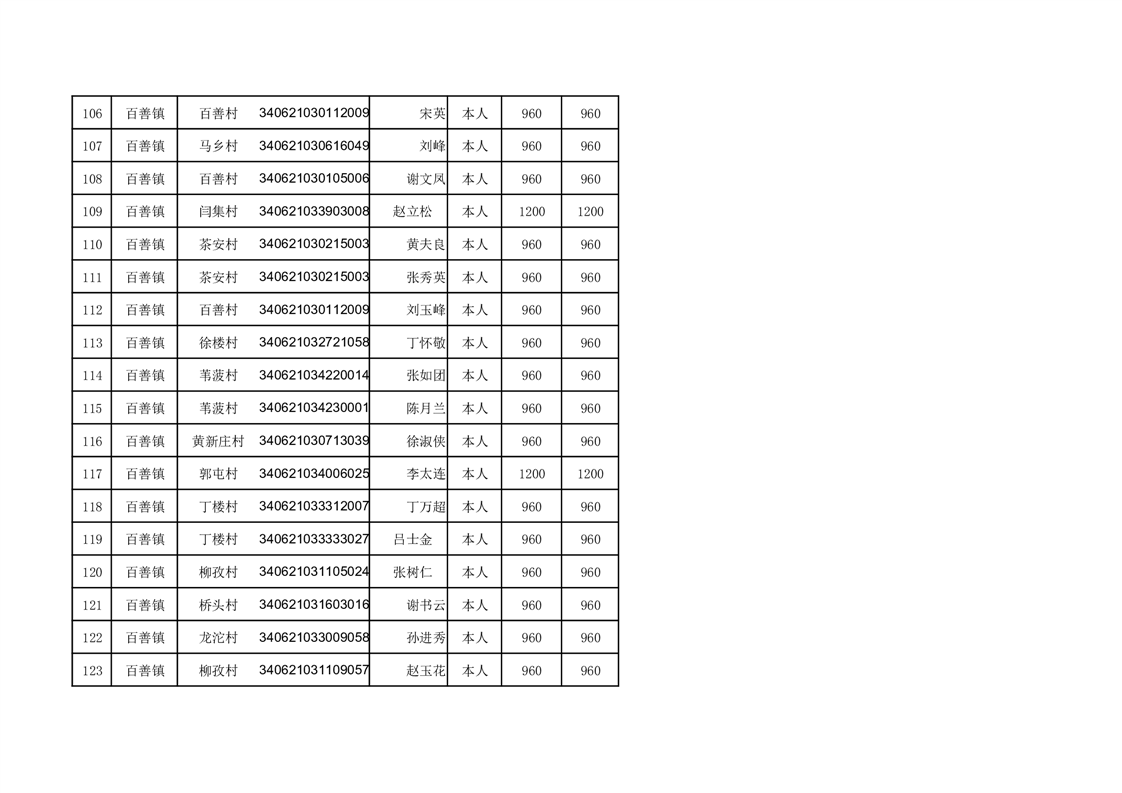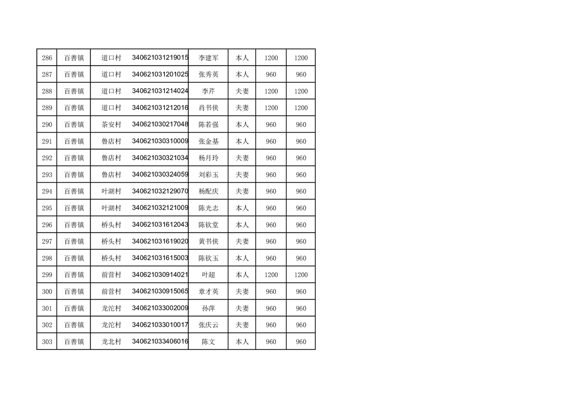 濉溪县计划生育家庭奖扶目标人群(扩面)惠农补贴资金单项分户清册