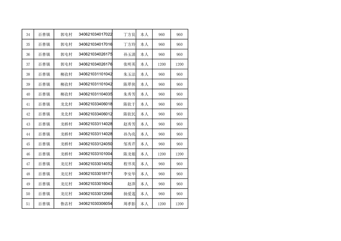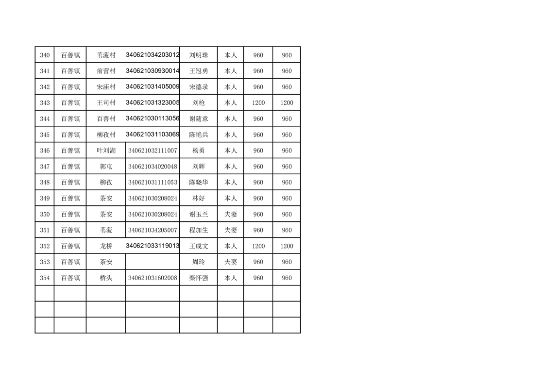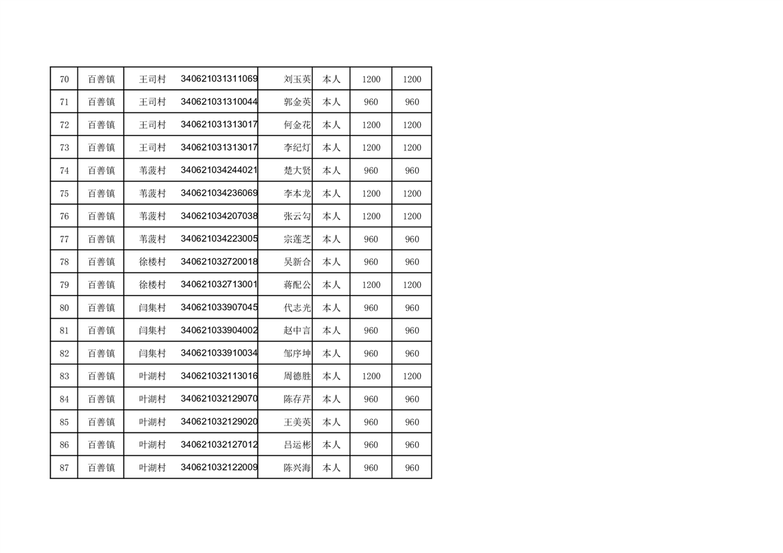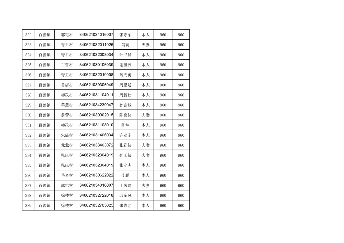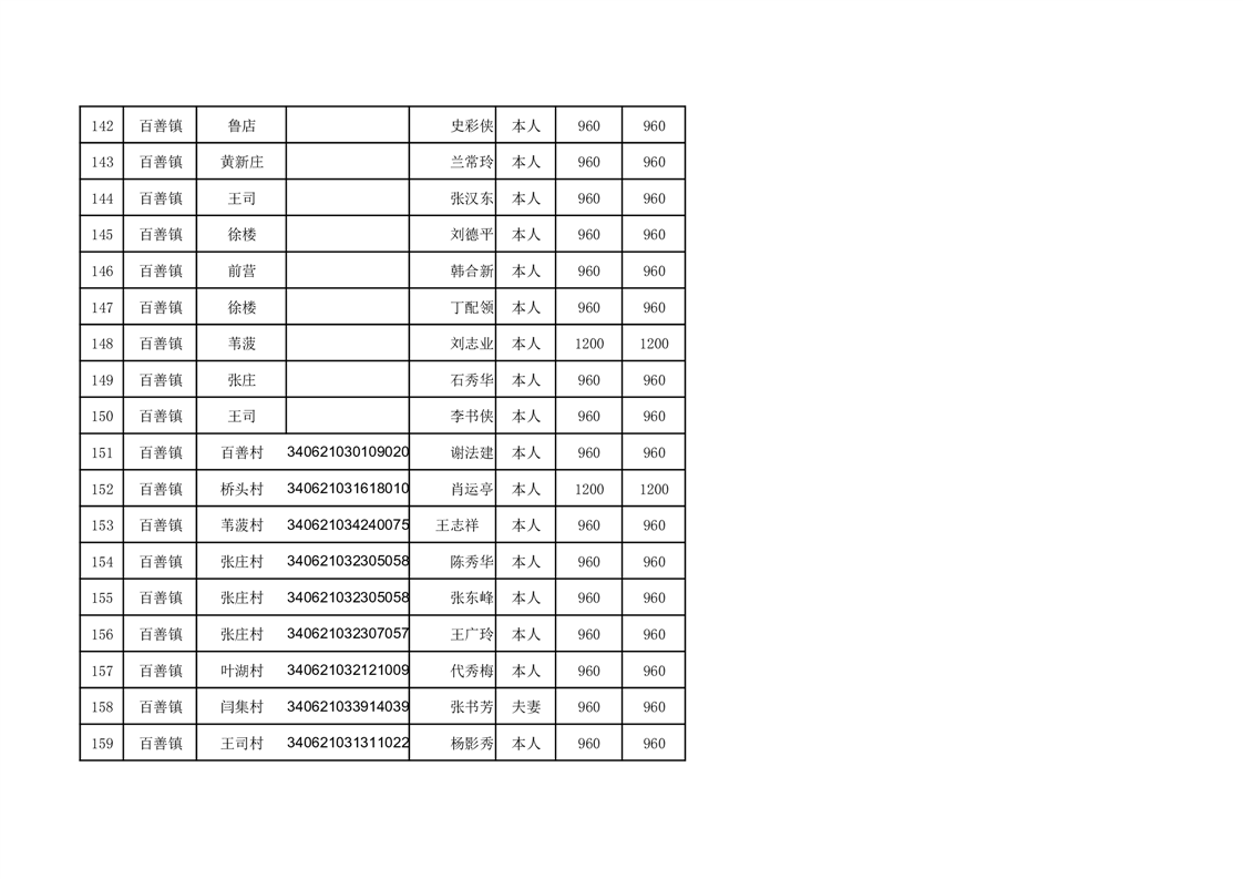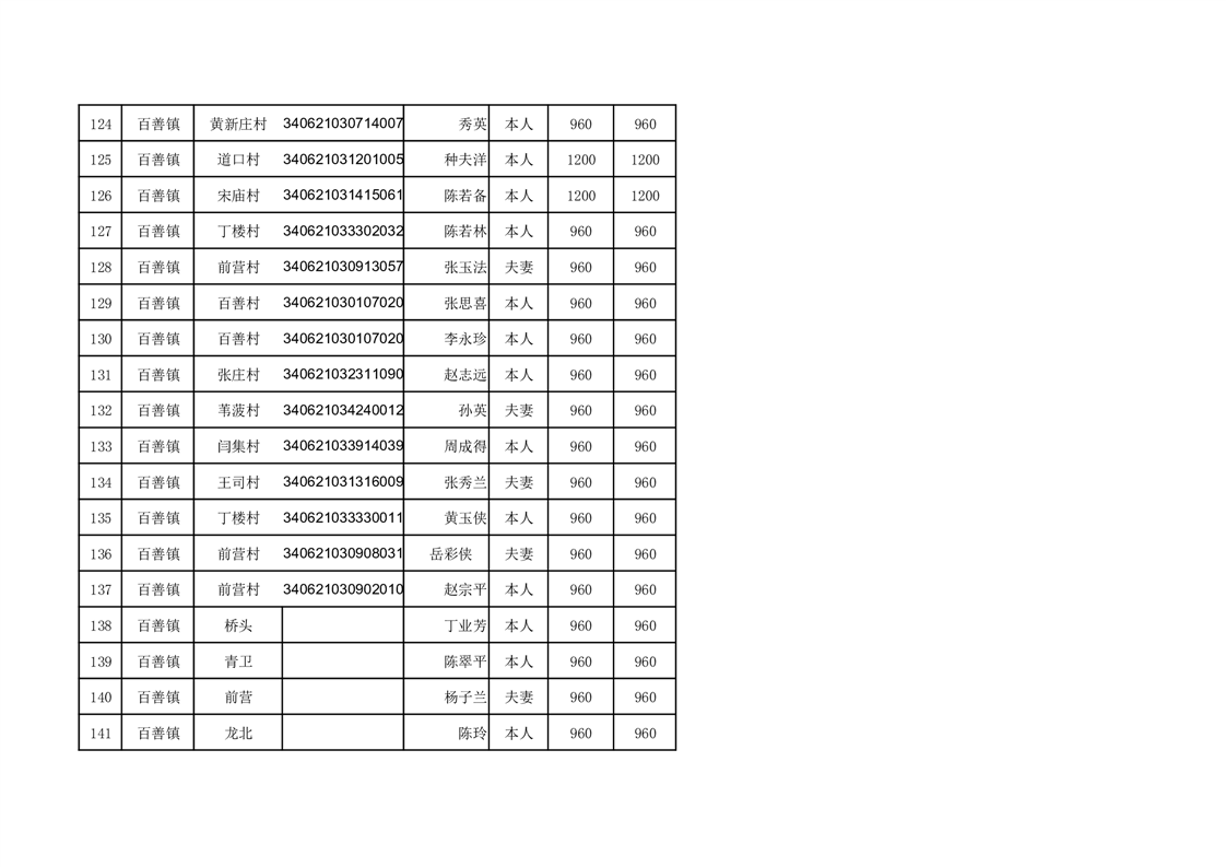 濉溪县计划生育家庭奖扶目标人群(扩面)惠农补贴资金单项分户清册