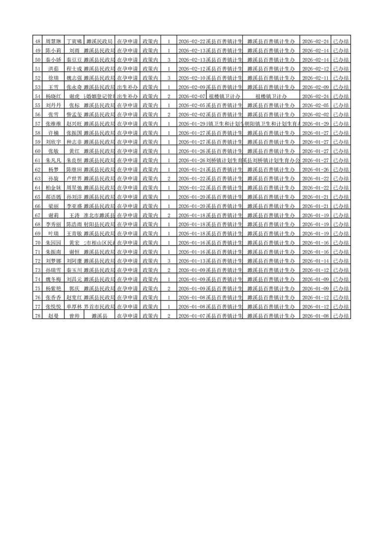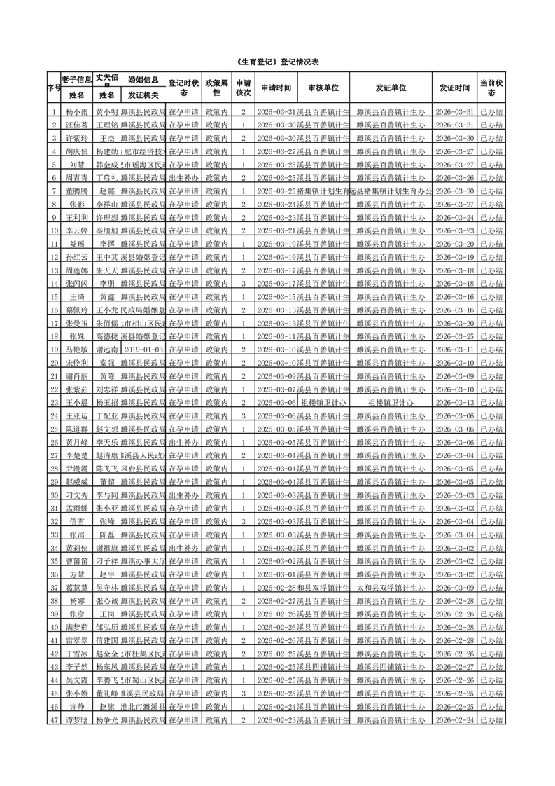 百善镇2026年第一季度生育登记情况