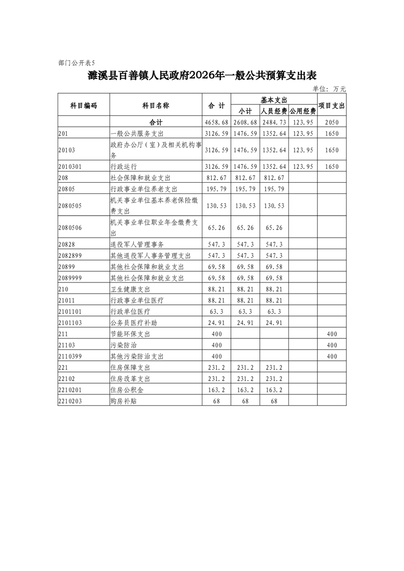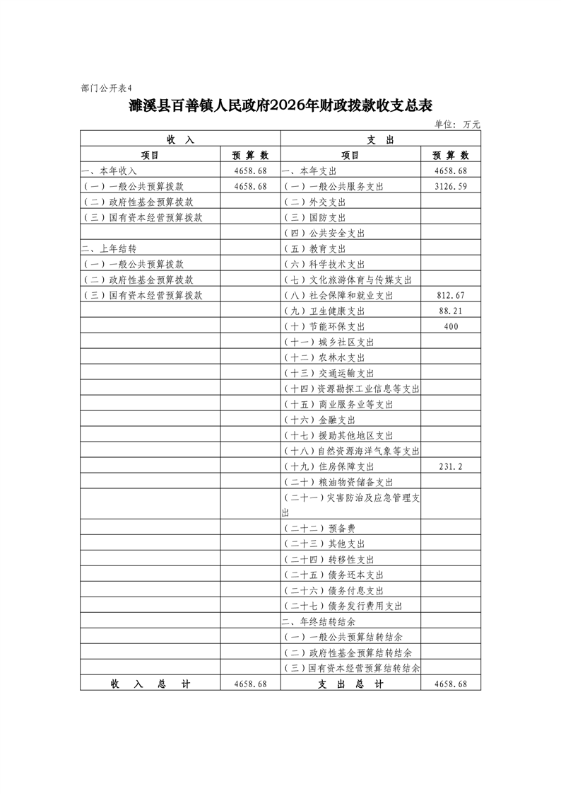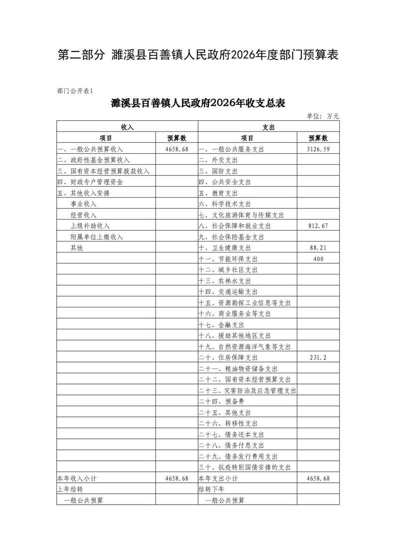 濉溪县百善镇人民政府2026年度部门预算 |