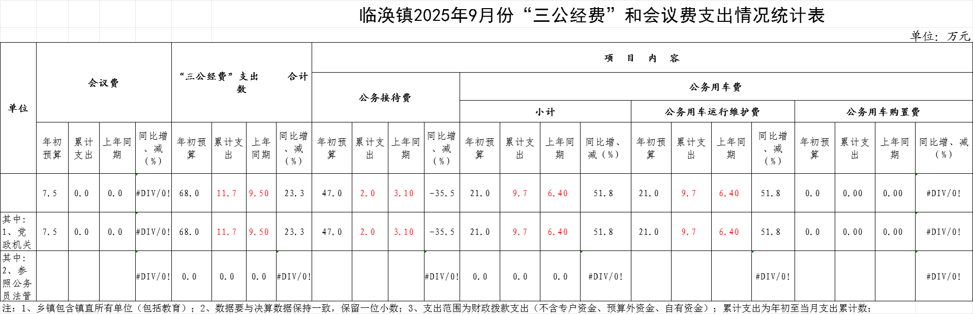 临涣镇2025年9月份“三公经费”和会议费支出情况统计表