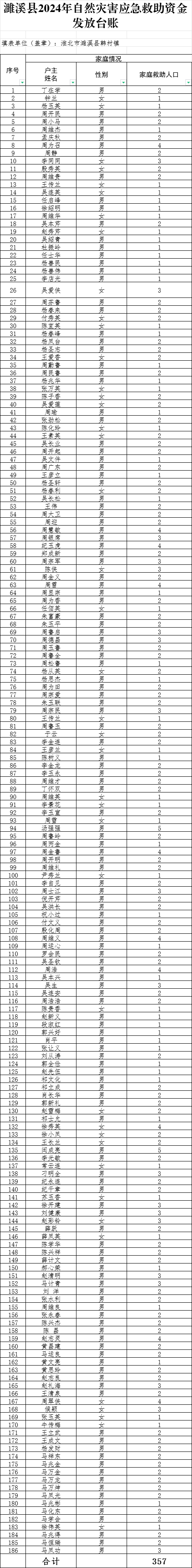 濉溪县韩村镇2024年自然灾害应急救助资金发放台账