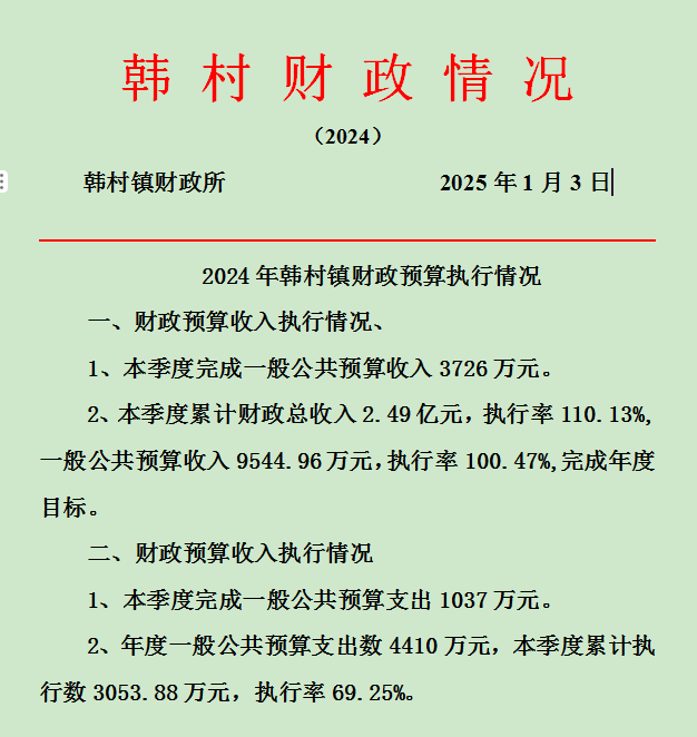 濉溪县韩村镇2024年部门四季度一般公共预算执行情况
