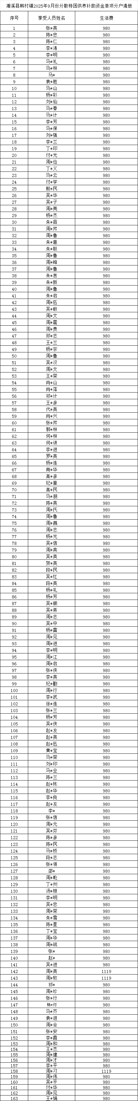 濉溪县韩村镇2025年9月份分散特困供养补助资金单项分户清册