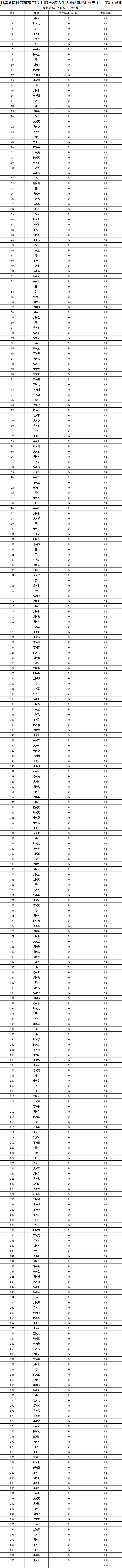 濉溪县韩村镇2025年12月困难残疾人生活补贴审核汇总表(1、2级)农业