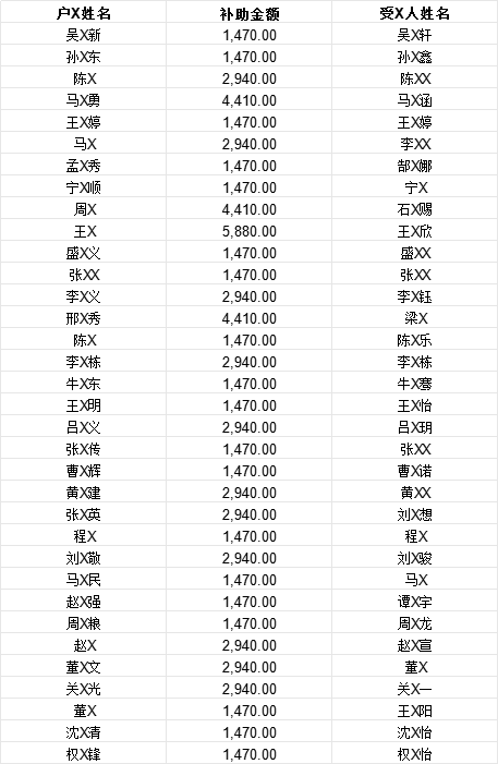 孙疃镇2025年12月孤儿生活费农村孤儿基本生活补助资金清册表