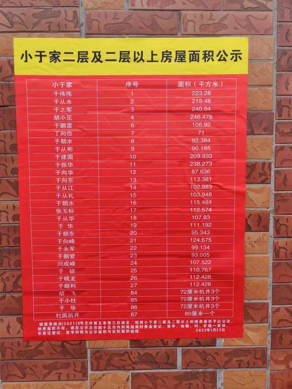 五沟镇南湖南村搬迁附属物面积及人口公示 |
