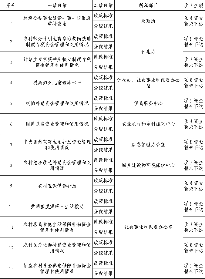 财政专项资金清单 |