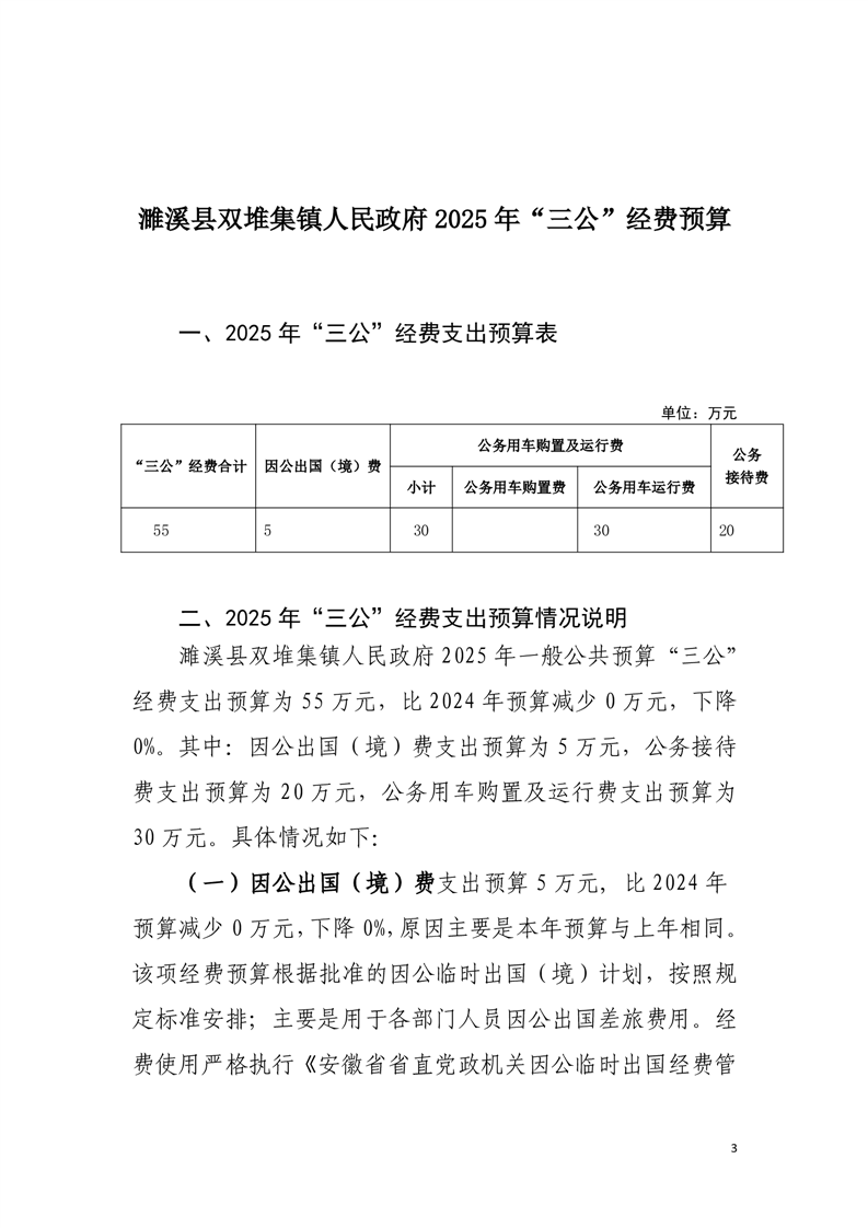 双堆集镇人民政府2025年“三公”经费预算公开 |