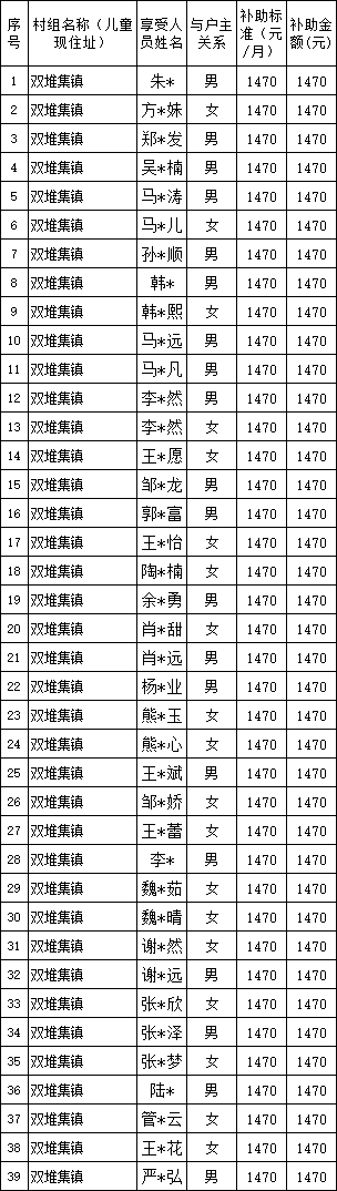 濉溪县双堆集镇2025年9月份孤儿和事实无人抚养儿童基本生活费发放清册