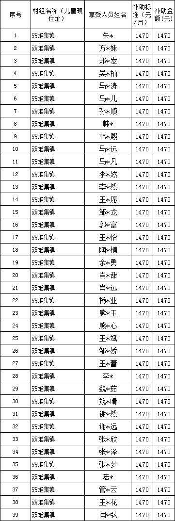 濉溪县双堆集镇2025年11月份孤儿和事实无人抚养儿童基本生活费发放清册