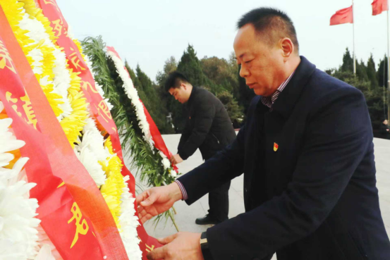 纪念仪式正式开始,全体人员肃立,默哀一分钟。现场寂静无声,唯有微风拂过陵园松柏,仿佛与众人一同悼念南京大屠杀中的遇难同胞,缅怀所有在抗日战争中牺牲的英烈,深切缅怀他们为民族独立与尊严作出的巨大牺牲。默哀结束后,镇主要领导、党员代表、退役军人代表依次走向烈士纪念碑,敬献花篮并仔细整理挽联,朵朵鲜花寄托哀思,声声敬意告慰先烈。
