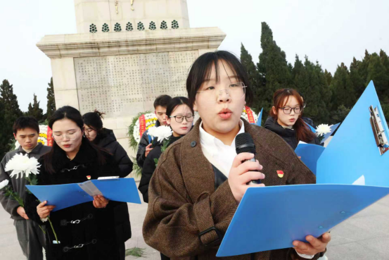 仪式最后,参与人员有序绕行烈士纪念碑一周,近距离瞻仰纪念碑,缅怀先烈功绩;绕行结束后,大家步行至烈士墓碑旁,将手中的小白花轻轻放在墓碑前,俯身鞠躬,向长眠于此的先烈致以最崇高的敬意。活动期间,志愿者们也主动行动起来,一边细致清理陵园环境,为先烈守护洁净肃穆的安息之地;一边向过往群众宣传国家公祭日的历史意义,发放宣传彩页与纪念书签,引导更多群众特别是青少年铭记历史、珍爱和平、奋发图强,让和平理念与爱国精神在潜移默化中深入人心。(范胜明)