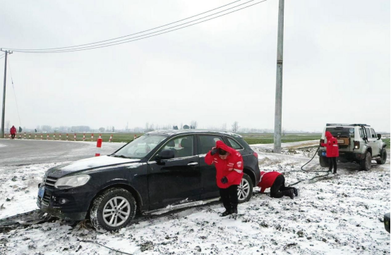 近日,受强冷空气影响,濉溪县遭遇持续低温雨雪冰冻天气,道路湿滑结冰,给群众出行带来极大安全隐患。面对严峻形势,濉溪县红十字救援队双堆中队闻令而动,启动24小时值班备勤机制,队员们顶风冒雪、不分昼夜开展车辆应急救援行动。