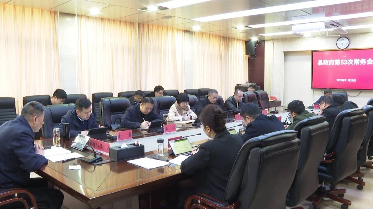 11月26日,县委副书记、县长孙进在政府三楼会议室主持召开县政府第53次常务会议。县领导孙啸、丁浩、王劲、鲍锐、涂小丽出席会议。县政协副主席柳洁坤,县人武部政委彭利国应邀参加会议。县纪委监委、县督查考核中心及县政府有关部门负责同志参加会议。