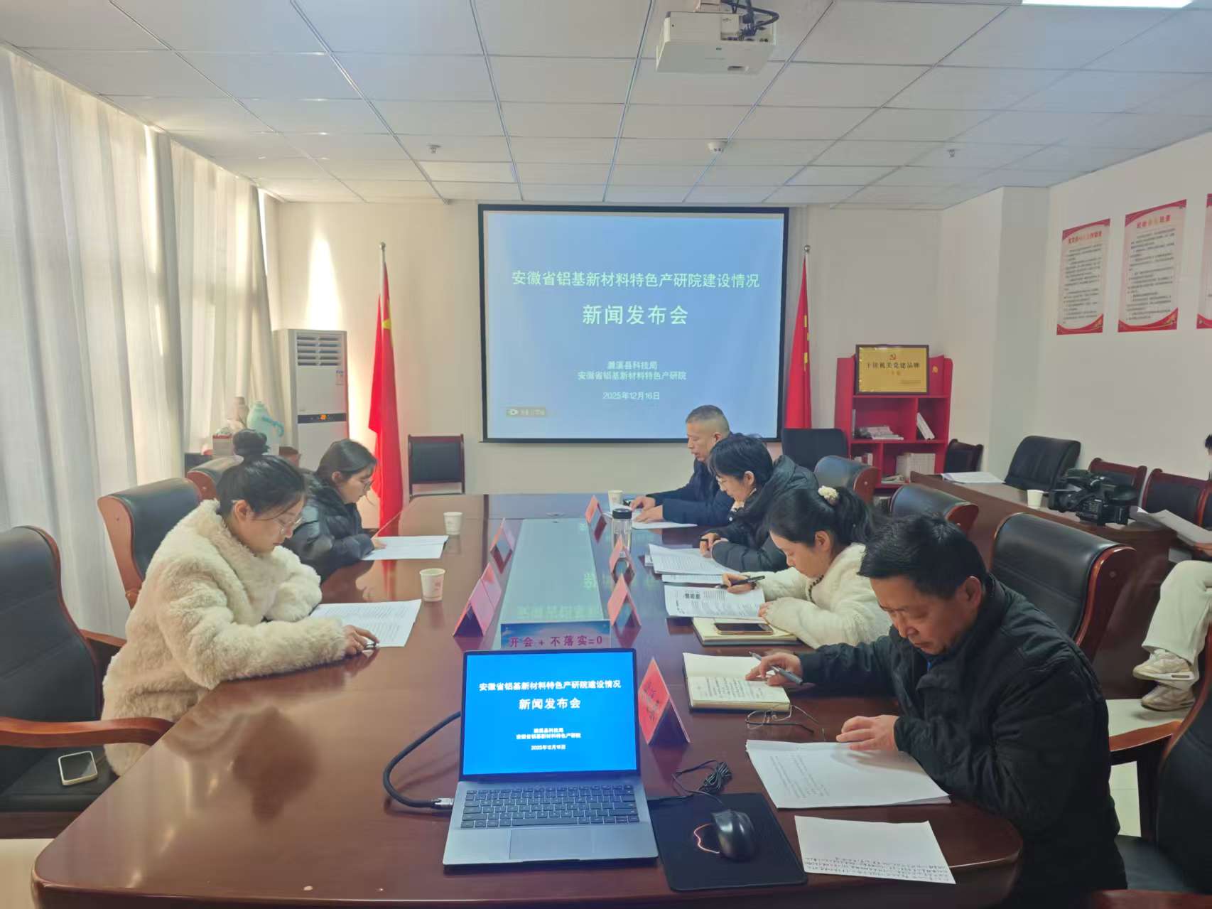 梁廷春:尊敬的记者朋友们,大家上午好!欢迎各位出席今天的新闻发布会。本次发布会的主要内容是向大家简要介绍安徽省铝基新材料特色产研院(以下简称:产研院)建设情况。我们很高兴邀请到市传媒中心、县融媒体中心、濉溪新闻网的记者朋友到场。出席今天发布会的还有:濉溪县科技局党组书记、局长金蕙梅同志,濉溪县科技局党组成员、二级主任科员殷玉琴同志,安徽省铝基新材料特色产研院院长宋晓辉同志。