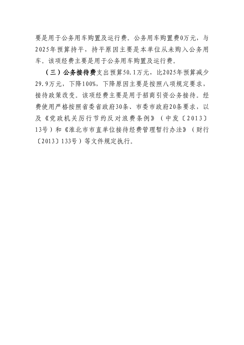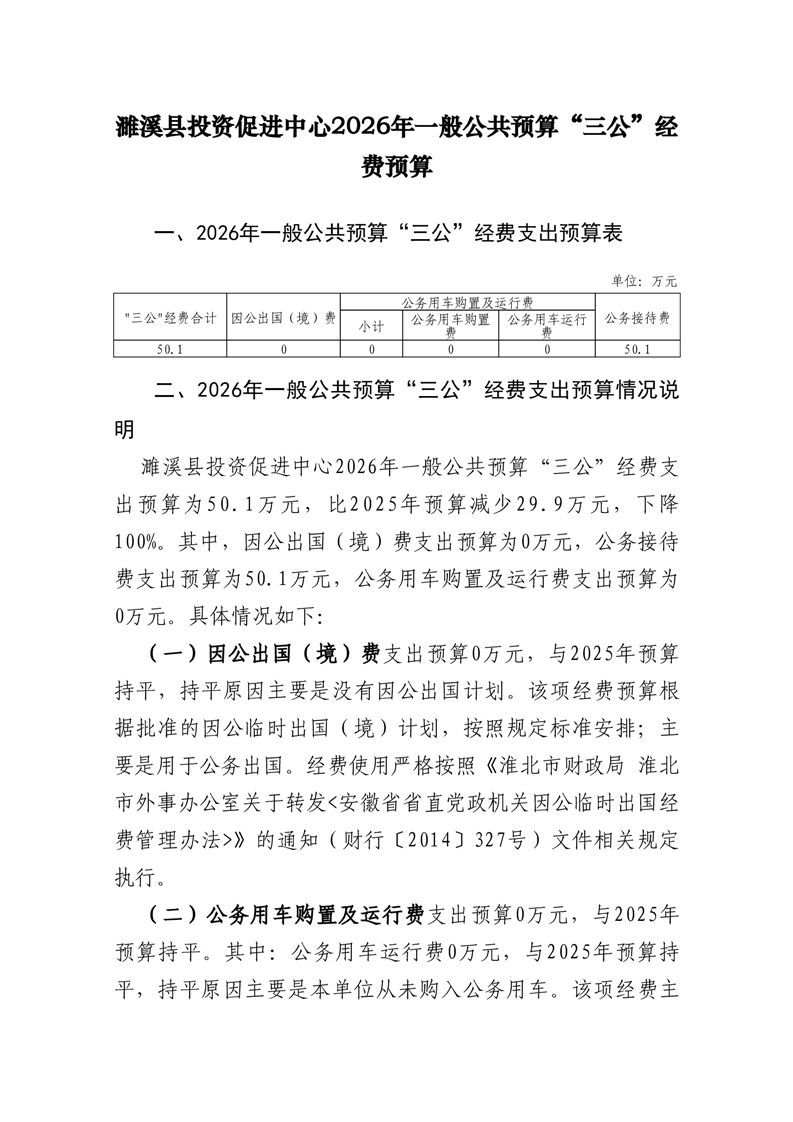 濉溪县投资促进中心2026年度部门一般公共预算财政拨款“三公”经费预算情况说明