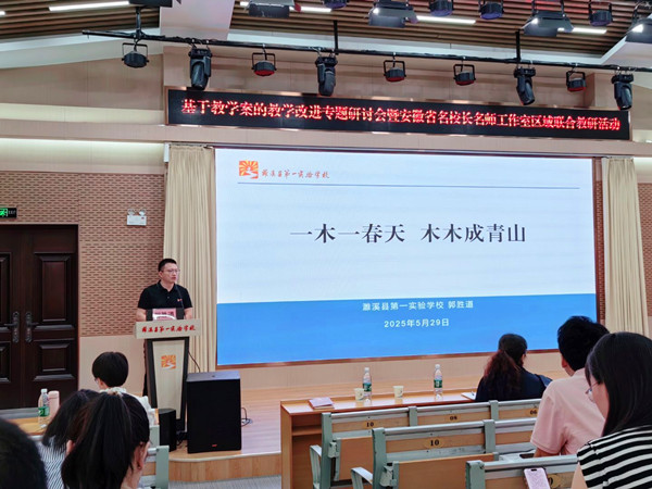 2025年5月29日上午,濉溪县第一实验学校迎来了“基于教学案的教学改进”专题研讨会暨安徽省名校长工作室跨区域联合教研活动。此次活动由濉溪县教育科学研究室主办,安徽省郭胜道、杨丽、王庆兰名校长工作室及张辉名师工作室承办,吸引了局属学校、中心学校相关学科教师及各工作室成员参与。