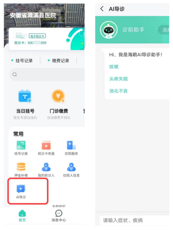 1. 关注“濉溪县医院”微信订阅公众号,点开“AI导诊”发送问题关键字,即有智能客服24小时在线回复。