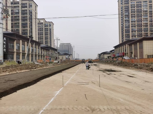 百善基础设施项目建三路水稳摊铺