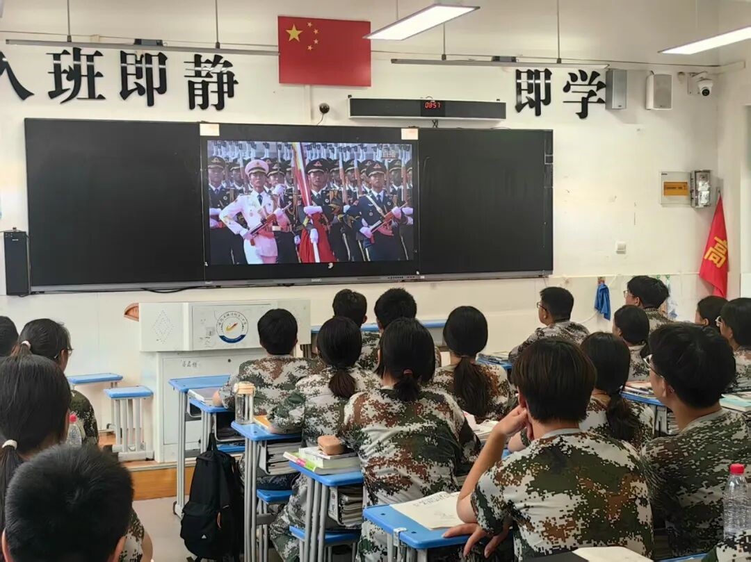 为深化师生的家国情怀培育,濉溪二中精心统筹,组织全体师生集中观看此次阅兵式 —— 既借阅兵展现的恢弘气势,助力师生筑牢理想信念;更以阅兵承载的历史记忆,激励大家缅怀先烈、勿忘国耻、铭记历史,在炽热的爱国情怀中传承不朽荣光。