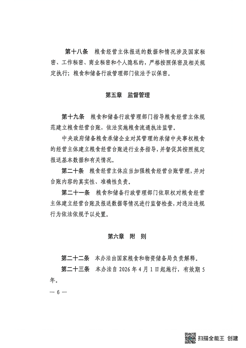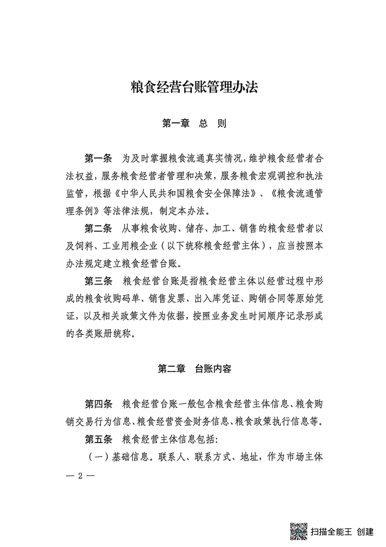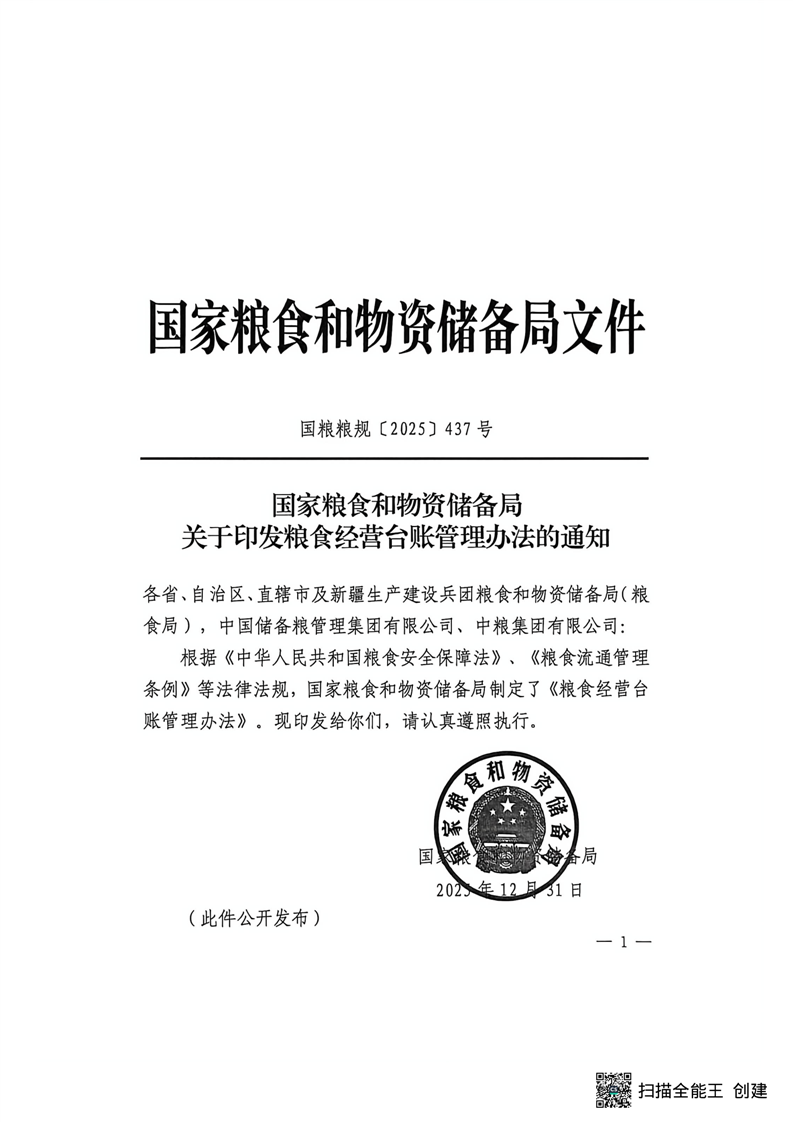 国家粮食和物资储备局关于印发粮食经营台账管理办法的通知