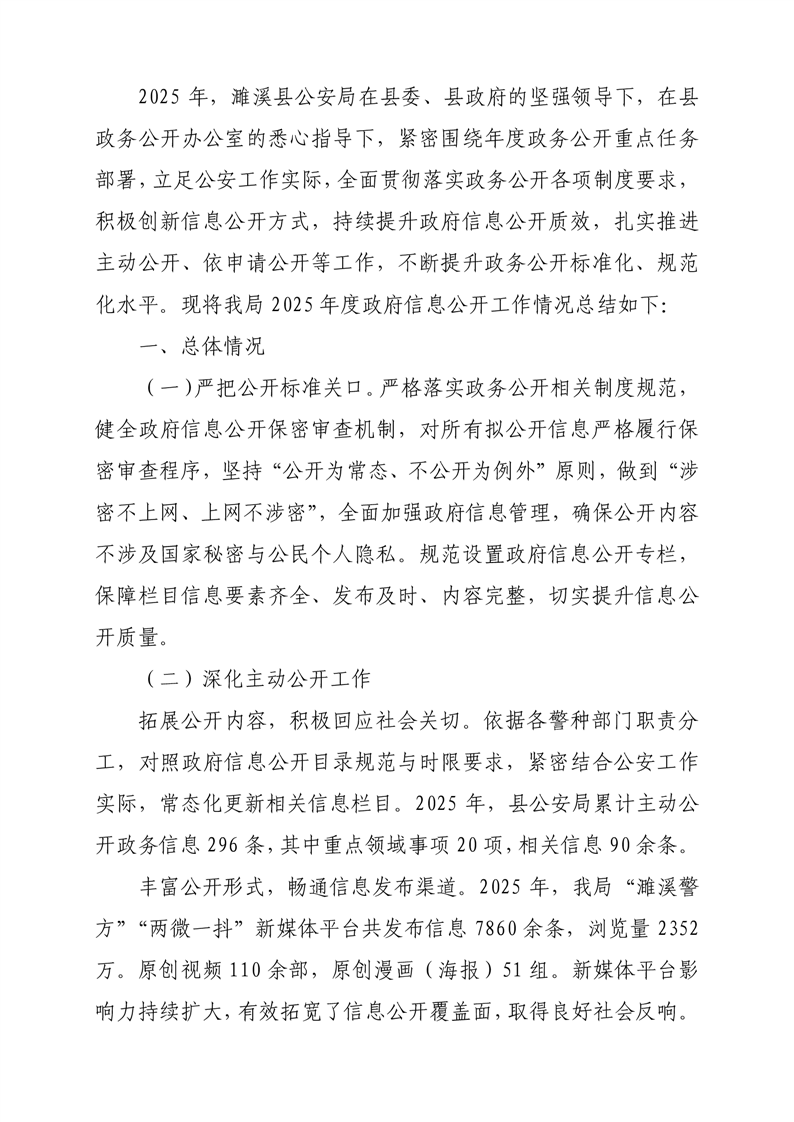 濉溪县公安局2025年政务公开工作总结