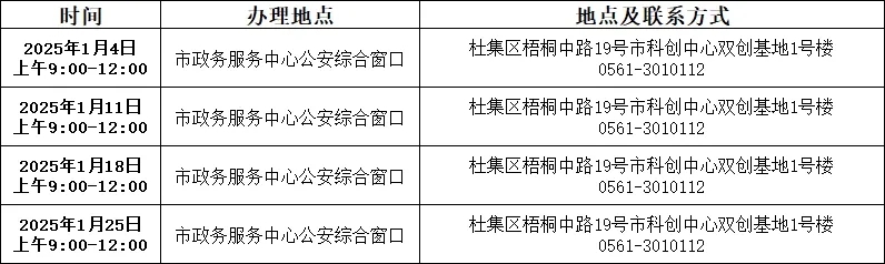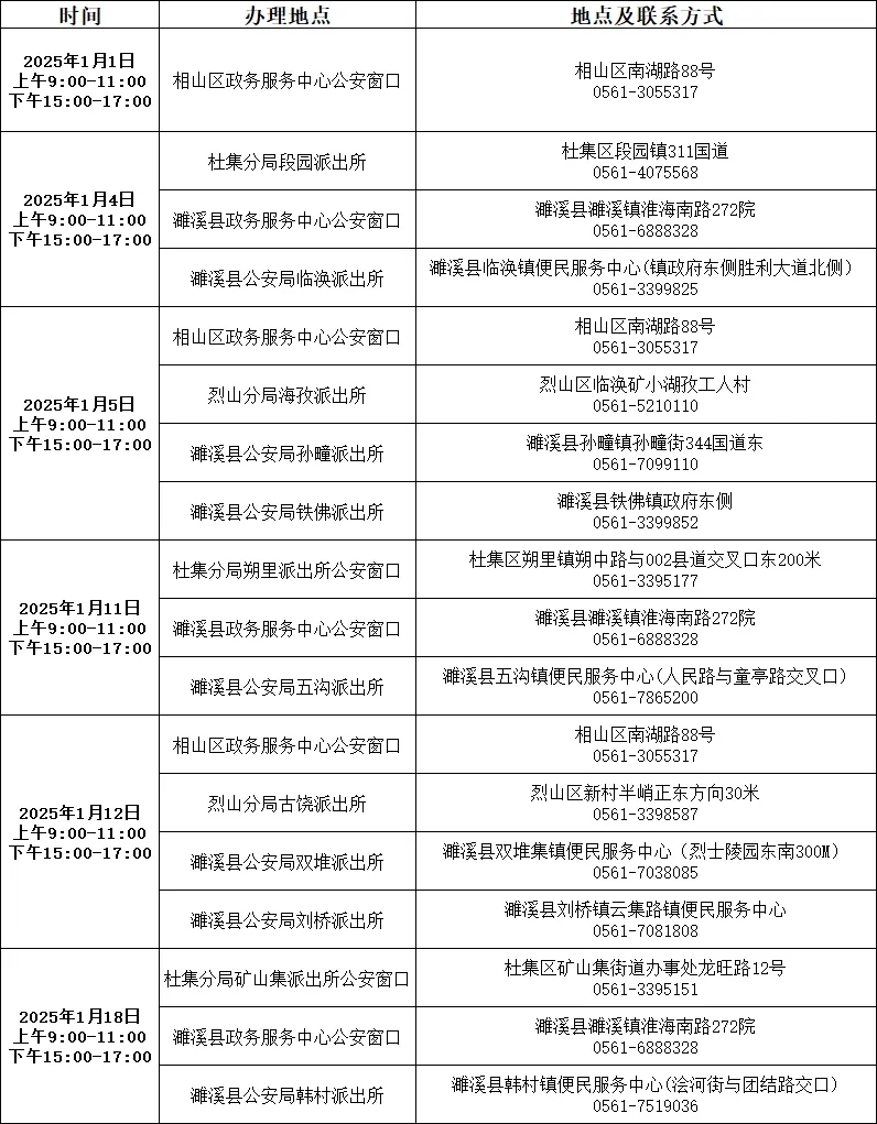 【主动回应】@所有人,请转发收藏,淮北公安政务2024年1月周末服务安排!