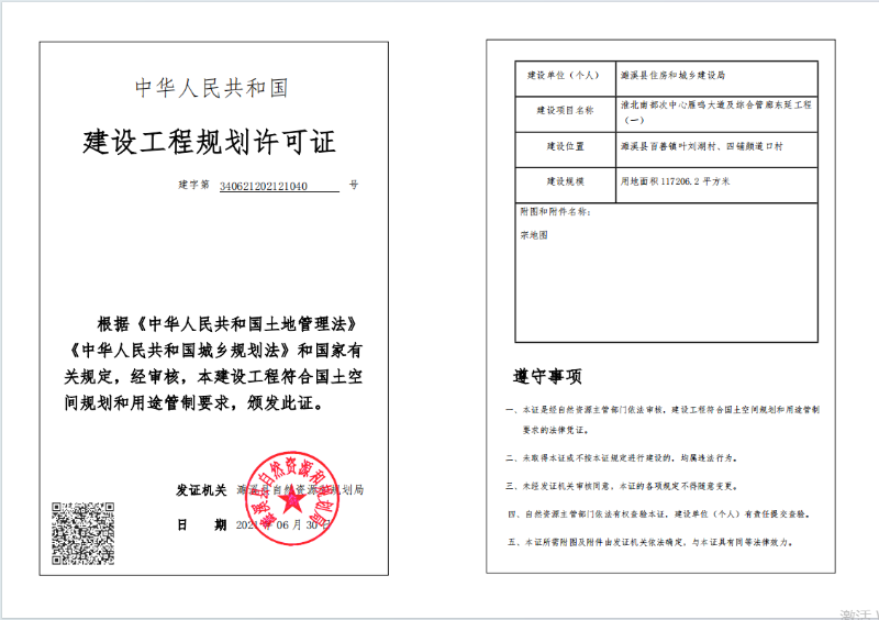 淮北南部次中心雁鸣大道及综合管廊东延工程